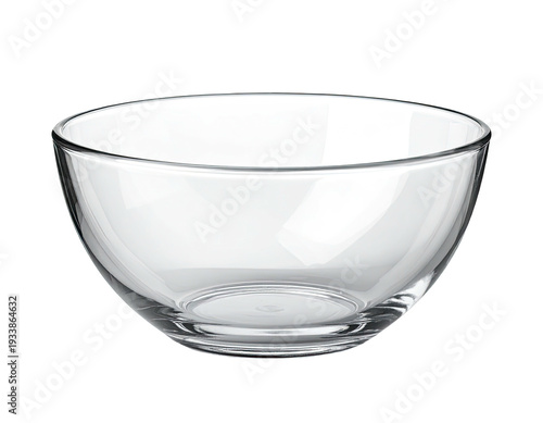 Clear glass bowl, transparent, simple, rounded shape, kitchenware