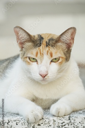 Close up cute cat on cement floor