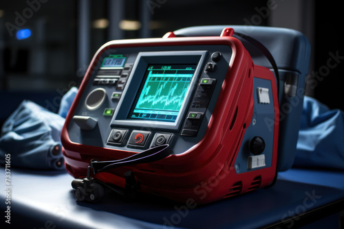Close up of a red electrocardiogram machine in a hospital. Health concept, medical institutions, hospitals