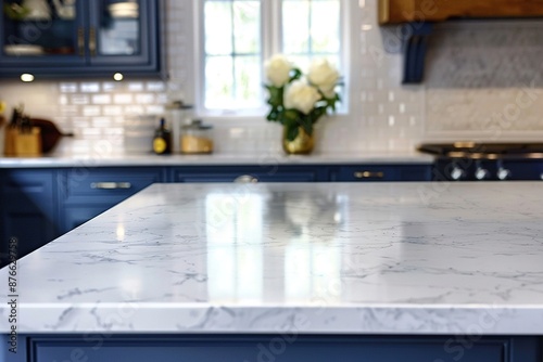 Close Up of Gleaming Marble Kitchen Countertop.