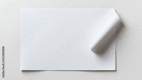 Close-up of a blank paper sheet with a curled corner on a gray background, ideal for design or presentation templates.