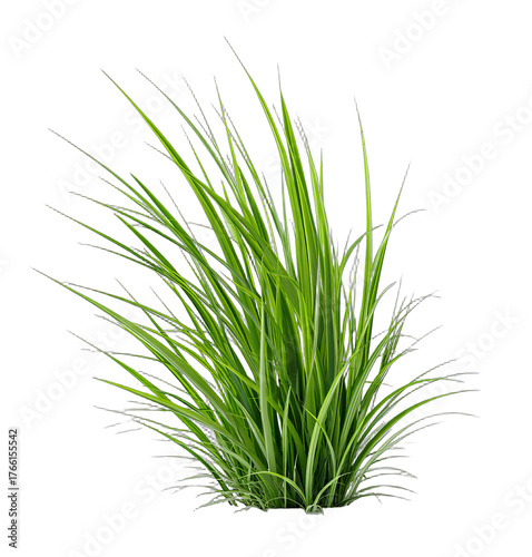 Close-up of a fresh green grass plant with long, slender leaves, showcasing its vibrant and natural appearance.