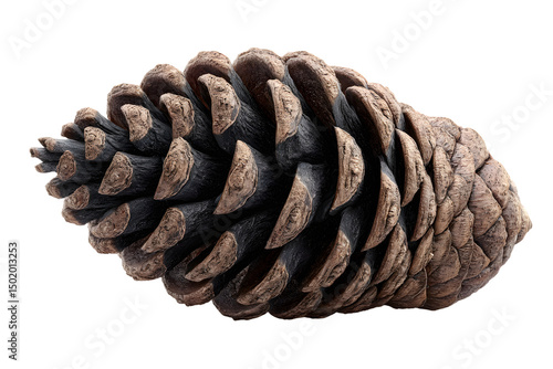 Closeup of a Single Brown Pine Cone Isolated on Black Background