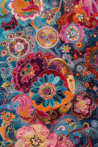 Close-up of an intricately colorful artistic pattern; vibrant and eye-catching design.