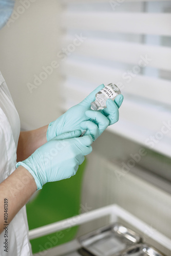 Closeup of syringe and injection vial flu. Measles, coronavirus, covid-19 vaccine disease prepare for human.