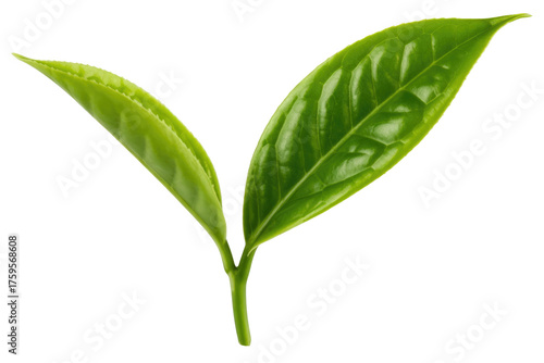 Close-up of two vibrant green tea leaves, isolated on a transparent background. background removed