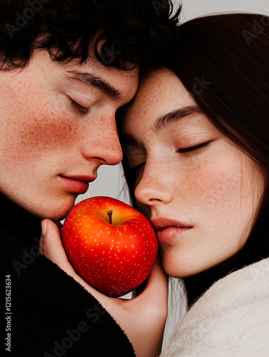 Close-up Portrait of Young Couple with Apple