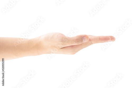 Close-up shot from the side view of open the palm of the hand, Isolated on white background, Clipping path Included.