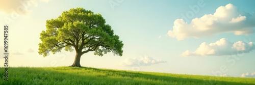 Close-up, single tree swaying softly in the breeze; tranquil atmosphere , environment, time, background