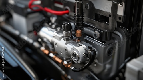 Close-up View of Precision Engine Components Featuring High-Quality Mechanical Parts, Sophisticated Technology, and Intricate Designing in Automotive Engineering