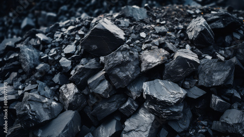Coal mining or energy source, environment protection. Industrial coals, volcanic rock, natural resource deposits, raw materials, geological mineralogy, mining industry