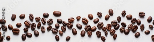 Coffee Beans Scattered on a White Background