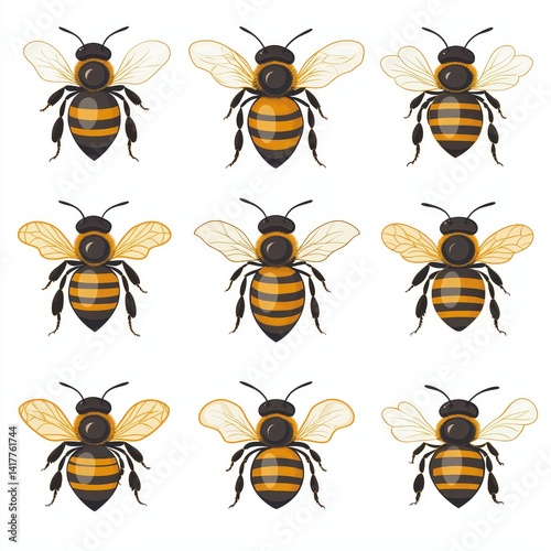 Collection of Realistic Bee Illustrations in Different Wing Positions on white background