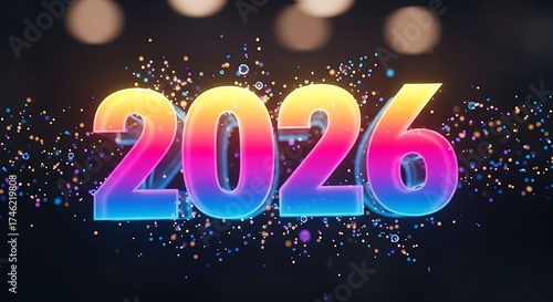 Colorful 2026 new year illustration with bokeh lights effect