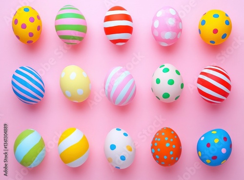 Colorful Decorated Easter Eggs Pattern on Pink Background for Celebration