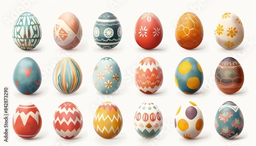 Colorful Easter eggs with various patterns,