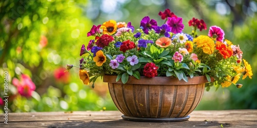 Colorful flowers planted in a decorative flower pot , Floral, Garden, Decoration, Plants, Blooms, Nature, Botanical
