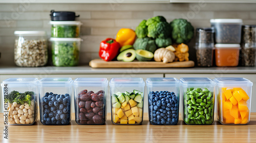 Colorful fruits and vegetables in clear storage containers