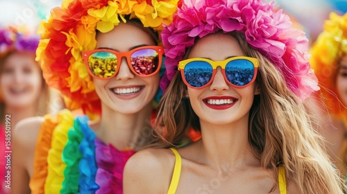 Colorful Parade with Enthusiastic Spectators Dressed in Festive Attire Enjoying the Revelry and Vibrant Scene of Joy Happiness and Community Spirit
