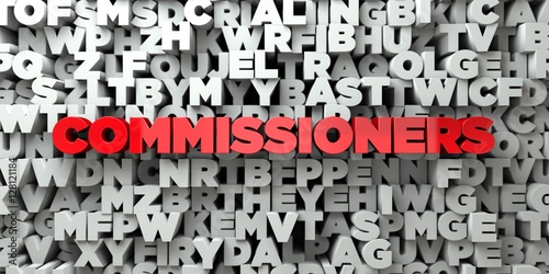 COMMISSIONERS - Red text on typography background - 3D rendered royalty free stock image. This image can be used for an online website banner ad or a print postcard.