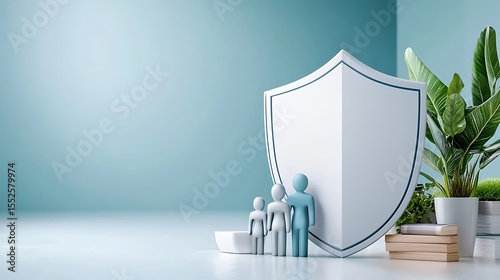Concept of security and protection with figures and shield