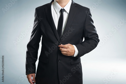Confidence businessman in black suit , close up .