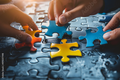 Connecting Colorful Puzzle Pieces by Hand - Teamwork Concept