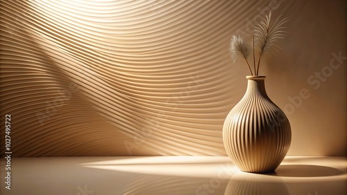 Contemporary beige space with vase and dynamic light patterns extreme close-up