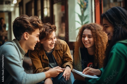 Conversation laughing talking happy.
