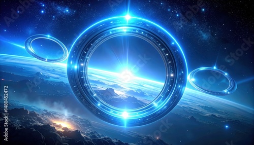 Cosmic portal event outer space digital art celestial environment dramatic view interdimensional exploration