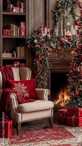 Cozy Christmas Living Room with Fireplace and Decor