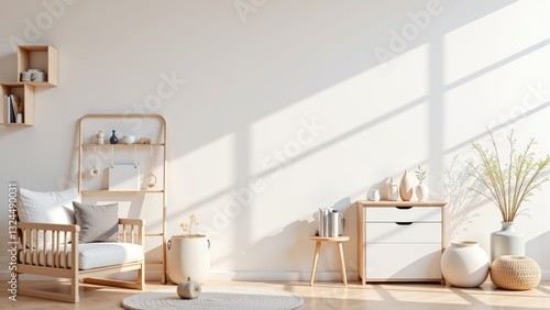 Cozy Scandinavian children's room interior featuring minimalistic furniture and natural light. Concept highlights cozy Scandinavian children's room creating warm, inviting atmosphere