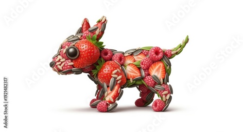 Creative dog made of fresh fruits and seeds