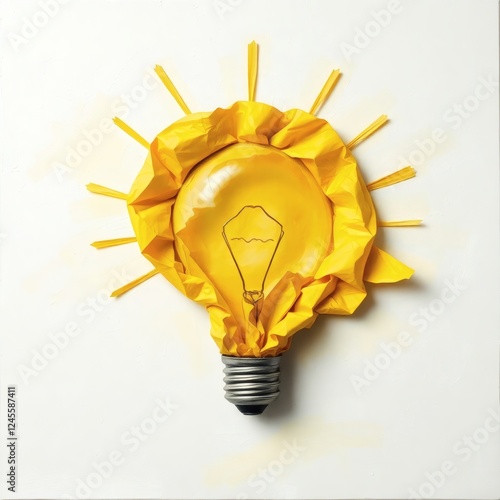 Creative light bulb design with crumpled yellow paper and artistic touch showcasing innovation and imagination