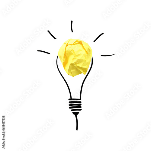Crumpled yellow paper light bulb idea isolated on a transparent background image