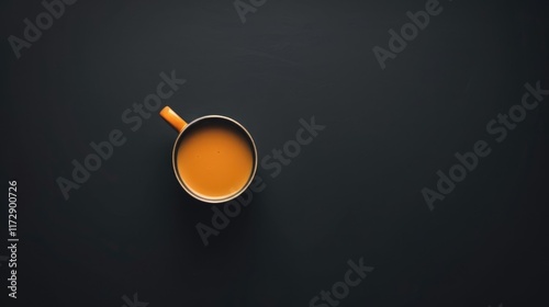 Cup of coffee on black background with copy space office black table.