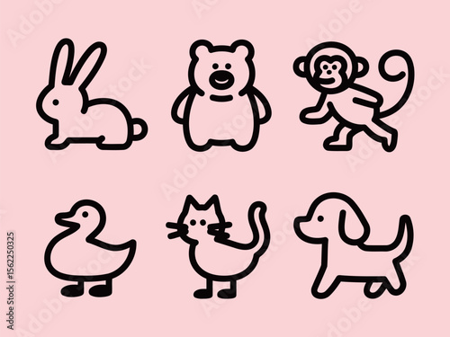 Cute Animal Line Drawings featuring rabbit bear monkey duck cat dog