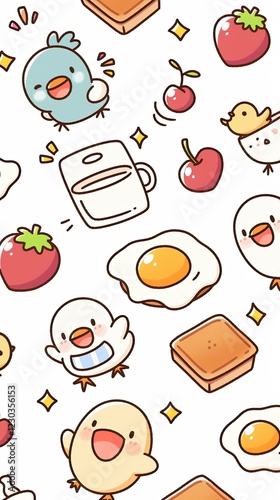 Cute Cartoon Breakfast Food and Chicks Pattern
