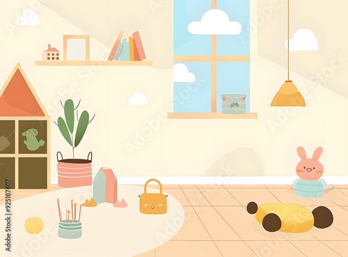 Cute Cartoon Illustration of a Nursery Room with Playful Decor