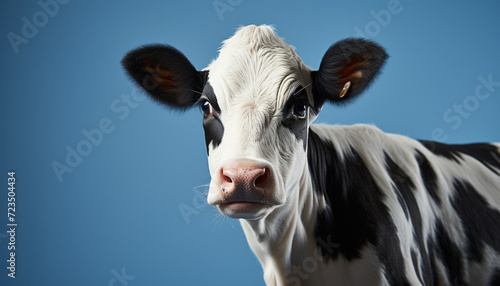 Cute cow grazing in a green meadow on a farm generated by AI