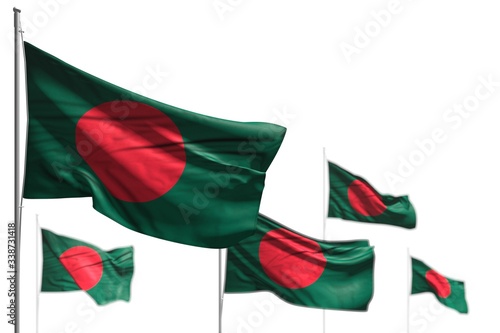cute five flags of Bangladesh are waving isolated on white - picture with selective focus - any occasion flag 3d illustration..