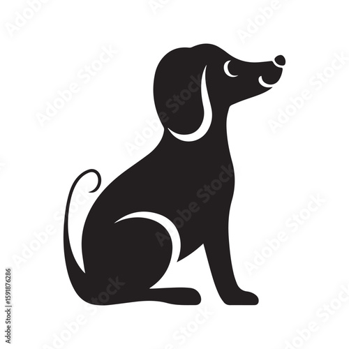 Cute sitting dog silhouette icon. Simple black puppy graphic, vector logo for pet shop or veterinary clinic.