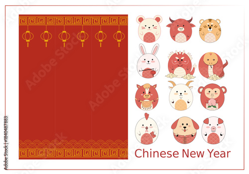 Cute Zodiac Animals Illustration for Chinese New Year