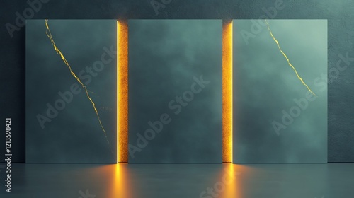 Dark teal marble panels glow mysteriously with vibrant orange light streaks creating a dramatic modern aesthetic. AI Generated