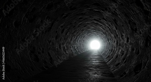 Dark tunnel leading to bright light at the end