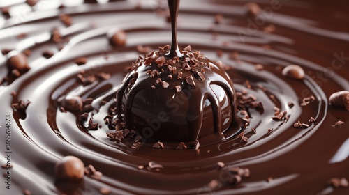 Decadent Delight: A Spherical Chocolate Treat Immersed in Luscious Ganache