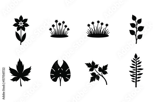 Decorative Floral and Leaf Silhouettes for Nature Vector Designs