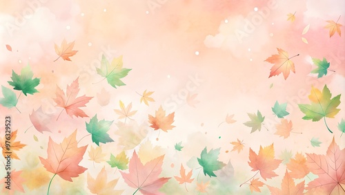 Delicate autumn leaves drifting on a soft pastel background, artistic illustration for seasonal decor, copy space