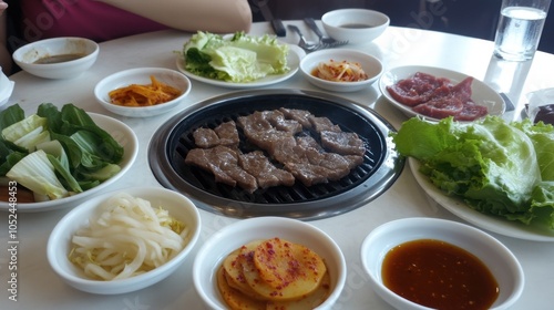 Delicious Korean BBQ with Fresh Ingredients and Sides
