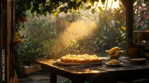 Delicious Toast with Bananas and Syrup in Sunlit Kitchen